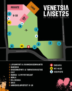 Tapahtumassa on käytössä Vessapassi. Vessapassi on tarkoitettu ihmisille, joilla on sairauden tai vamman vuoksi tarve päästä wc:hen kiireellisesti. Vessapassin haltijalla on oikeus käyttää tapahtuman wc-tiloja esteettä ja jonottamatta. Lue lisää: vessapassi.fi