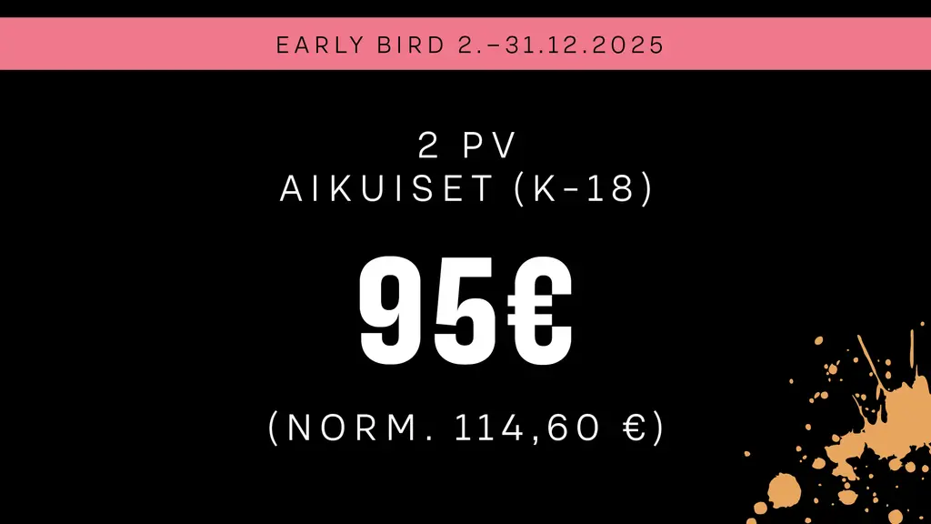 Aikuisten liput (K-18)Aikuisten kahden päivän liput edullisesti vuoden loppuun saakka.Osta liput Venetsialaisiin